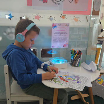 Vaikai su mumis saviraiškos mokosi šiuose užsiėmimuose - keramikoje, anglų kalboje, skaityme, teatro meno raiškoje.